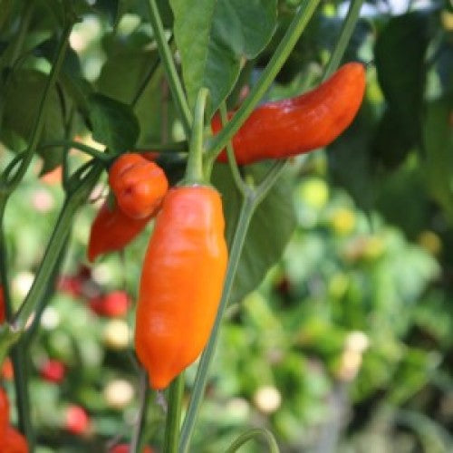 來自秘魯的 Queen Laurie Chilli 擁有令人印象深刻的特質。其 baccatum 品種可產出大量鬆脆的豆莢,食用後可快速產生水果風味。豆莢長度為 6 至 7 厘米,寬度約為 2 厘米,開始時為鮮綠色,成熟後會變成醒目的橙色。該品種在較冷的氣候下生長旺盛,並具有極強的耐受力,使其成為具有彈性且用途廣泛的種植選擇。